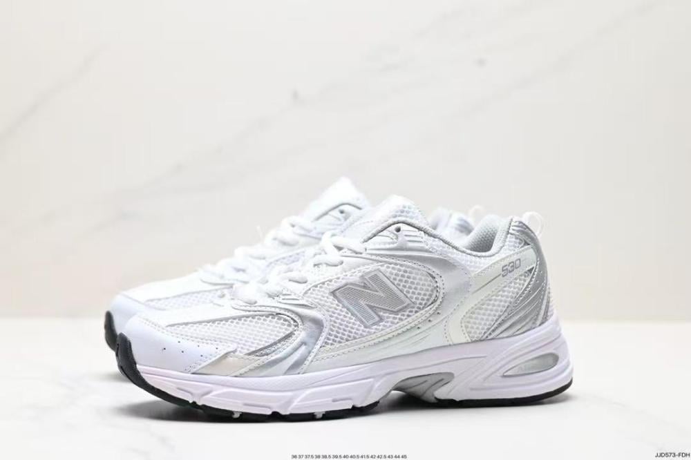 - صُمم الحذاء بشعار 'N' الأيقوني ويأتي باللون الأبيض الكلاسيكي مع لمسات عاكسة لتحسين الرؤية.